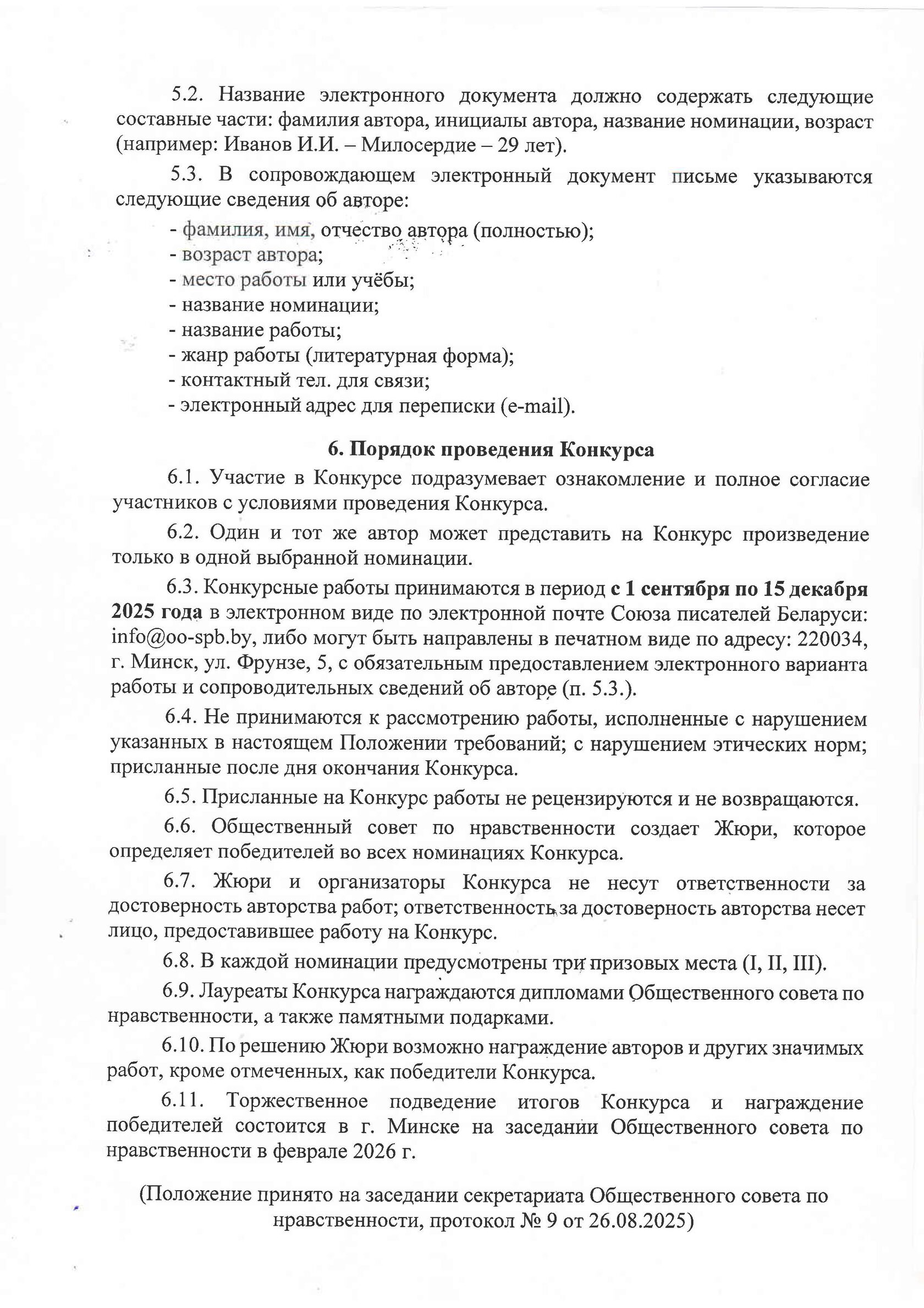 Произведения можно присылать организаторам до 15 декабря текущего года. Подведение итогов конкурса состоится в февраля 2026 года.