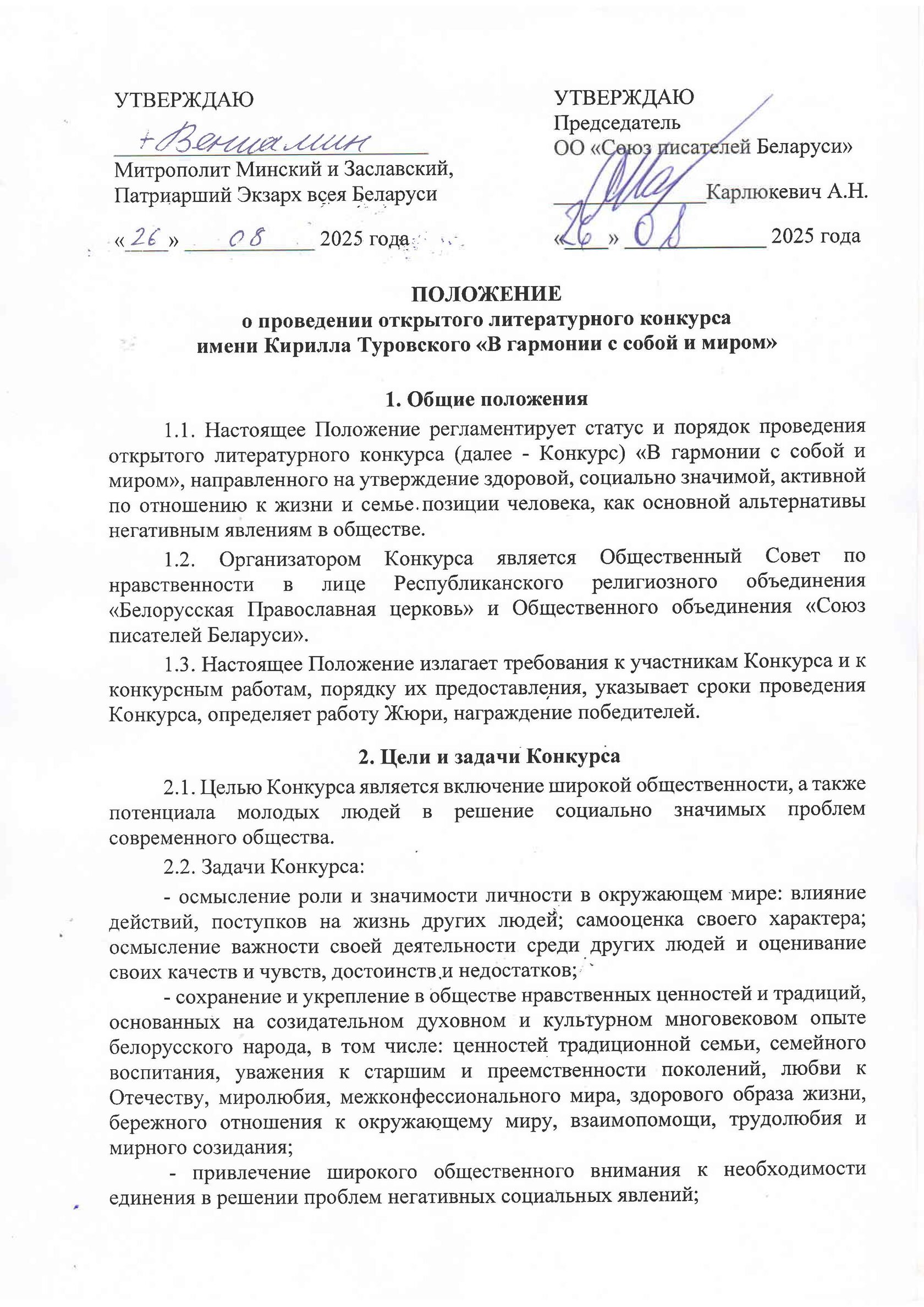 Общественный совет по нравственности в лице Белорусской Православной Церкви и Союза писателей Беларуси объявил II открытый литературный конкурс имени святителя Кирилла Туровского «В гармонии с собой и миром».
